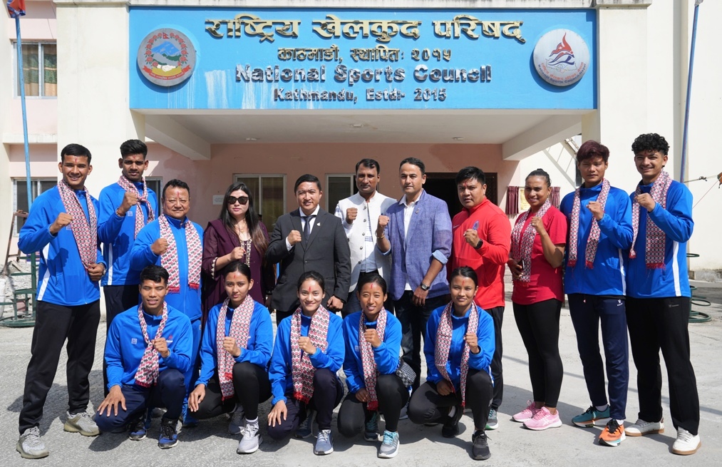 ९ खेलाडीसहित १२ सदस्यीय टोलीलाई राष्ट्रिय खेलकुद परिषद्का सदस्य–सचिव टंकलाल घिसिङ, राखेप बोर्ड एवं कार्यकारी समितिकी सदस्य नन्दा बस्याल र राखेपका सदस्य मानदेव हजराले सोमबार एक कार्यक्रमबीच बिदाइ गरे।