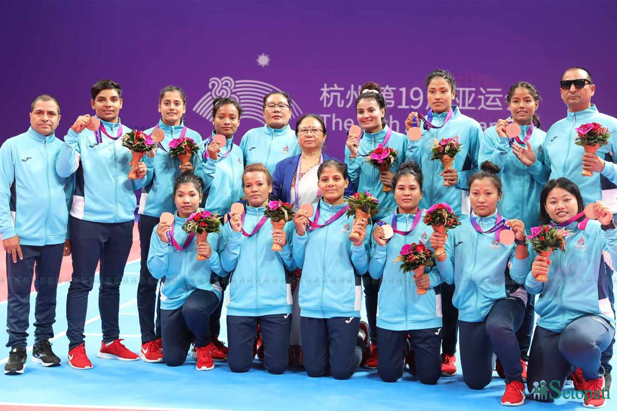 चीनको हाङझाउमा भइरहेको एसियाली खेलकुदमा नेपालले महिला कबड्डीबाट कास्य जित्यो।