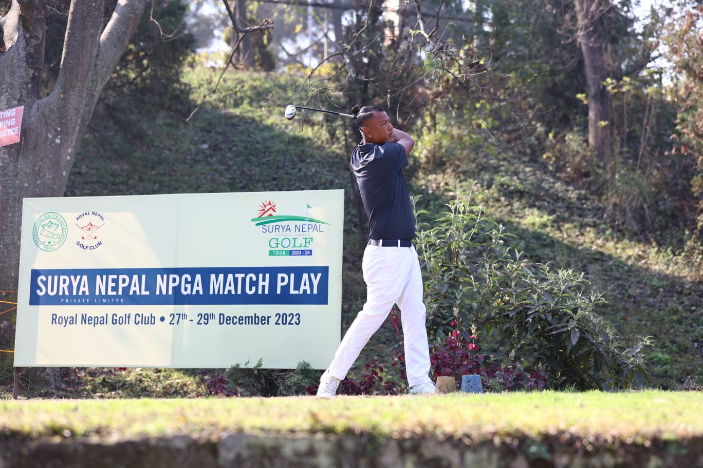 सूर्य नेपाल गल्फ टुर २०२३–२४ अन्तर्गत सिजनको दोस्रो प्रतियोगिता सूर्य नेपाल एनपीजीए म्याच प्लेको पहिलो दिन डिफेन्डिङ च्याम्पियन दिनेश प्रजापति क्वाटरफाइनलमा प्रवेश गर्दा दोस्रो वरियताका नीरज तामाङ पहिलो चरणबाटै बाहिरिएका छन।