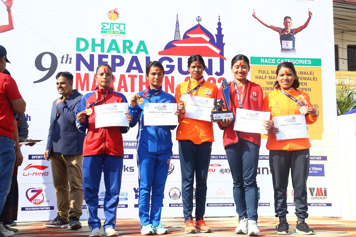 नवौं धारा नेपालगन्ज म्याराथनमा पुरुषतर्फ गोपीचन्द्र पार्की, खडकबहादुर खड्का, किरणसिंह बोगटी र सन्तोष विक्रम बिष्टले क्रमशः शीर्ष चार स्थान हासिल गरेका थिए । त्यसैगरी महिला हाफ म्याराथनतर्फ सन्तोषी श्रेष्ठ, फुलमती राना, पुष्पा भण्डारी र विन्द्रा धान्के श्रेष्ठले शीर्ष चारभित्र स्थान सुरक्षित गरेका थिए ।