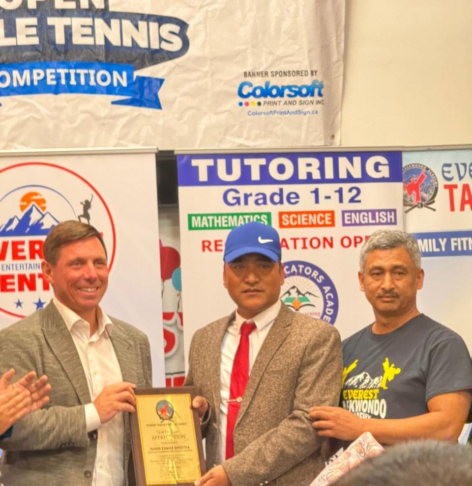 एभरेस्ट तेक्वान्दो एकेडेमी क्यानडाले नेपालीका तेक्वान्दोका मुख्य प्रशिक्षक नवीनकुमार श्रेष्ठलाई सम्मान गरेको छ।