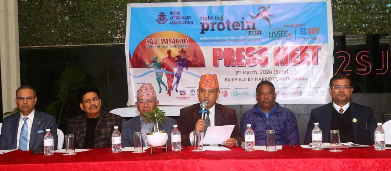 भेटेरिनरी एशोसिएसनले प्रोटिन माथिको अधिकार आत्मसात गर्दै प्रोटिनजन्य पदार्थमा पहुँच बढाउन जनचेतना फैलाउन आयोजना गर्दै आएको हाफ म्याराथनको तेस्रो संस्करण चैत दोस्रो साता हुने भएको छ।