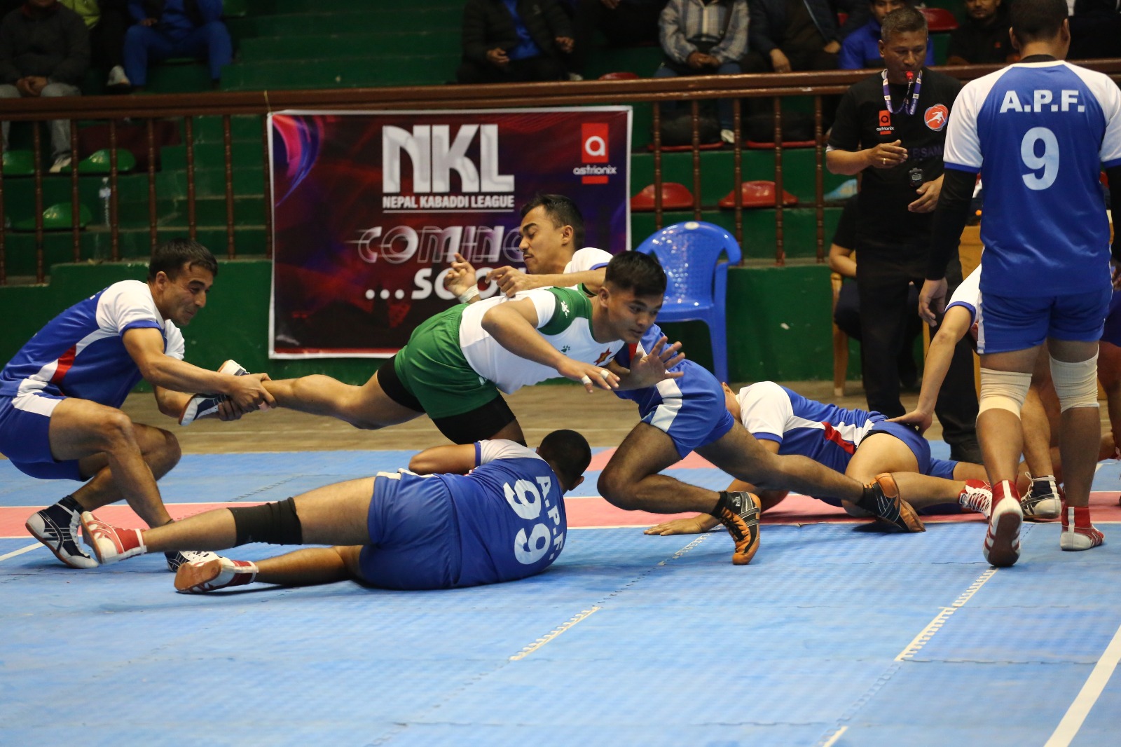 पहिलो दिन पुरुषमा नेपाल आर्मीले एपीएफलाई ३९–२२ ले पराजित गर्यो । आर्मीका प्रदीप मिजार ‘म्यान अफ द म्याच’ घोषित भए । पुरुषमै नेपाल प्रहरी क्लबले उपत्यका टोलीबाट वाक ओभर पाएको आयोजकले जनाएको छ ।