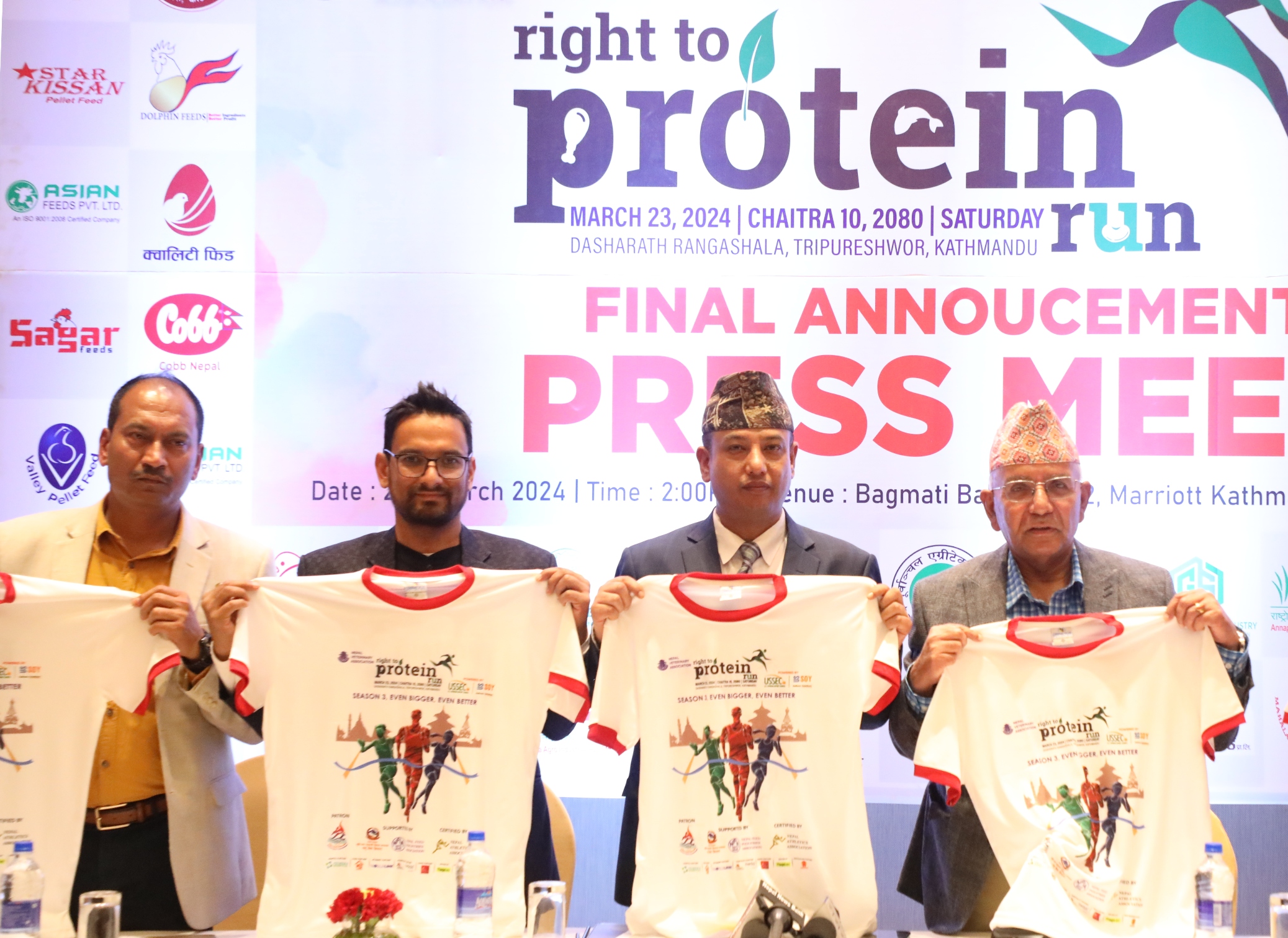पत्रकार सम्मेलनमा नेपाल भेटेरिनरी संघका अध्यक्ष डा. रामकृष्ण खतिवडा, संयोजक श्रेष्ठलगायतले प्रोटिन रनको टिर्सट पनि सार्वजनिक गरेका थिए । दौड त्रिपुरेश्वरस्थित दशरथ रंगशालाबाट सुरु भइ पुनः दशरथ रंगशालामै आएर टुंगिने छ ।
