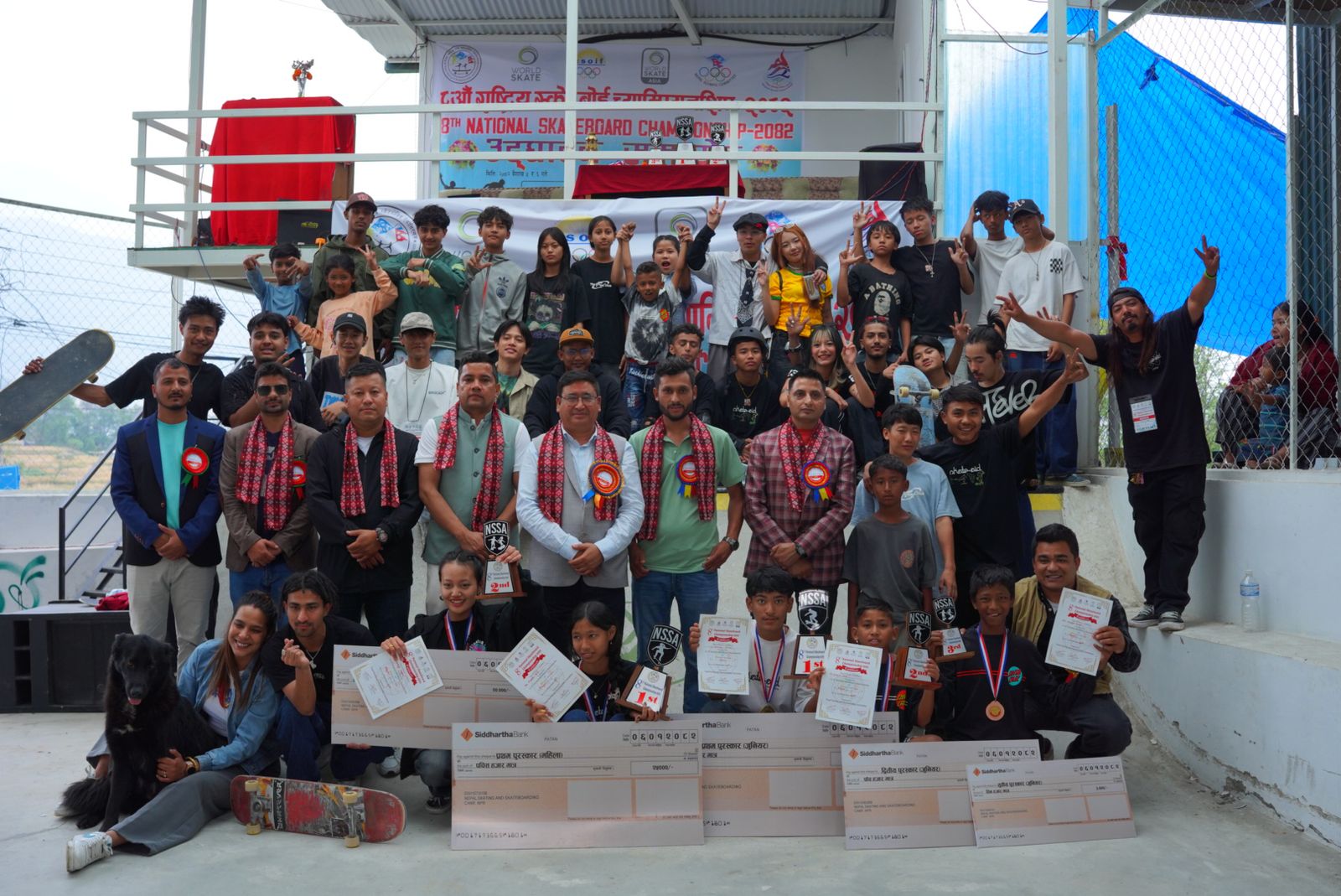 आठौ राष्ट्रिय स्केटवोर्ड च्याम्पियनशिप २०८२ अन्तरगतका विजेताले शनिबार नगद पुरस्कार, शिल्ड मेडल, र प्रमाणपत्र प्राप्त गरेका छन् ।