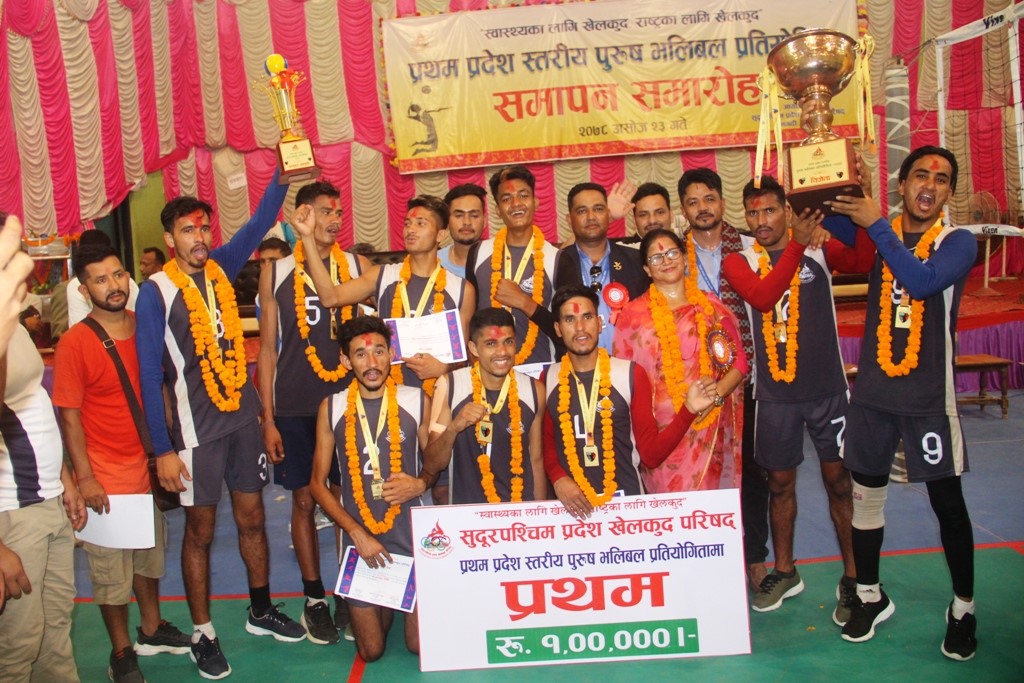 प्रथम सुदूरपश्चिम प्रदेश स्तरीय पुरूष भलिबल प्रतियोगिताको उपाधि डोटीले जितेको छ।