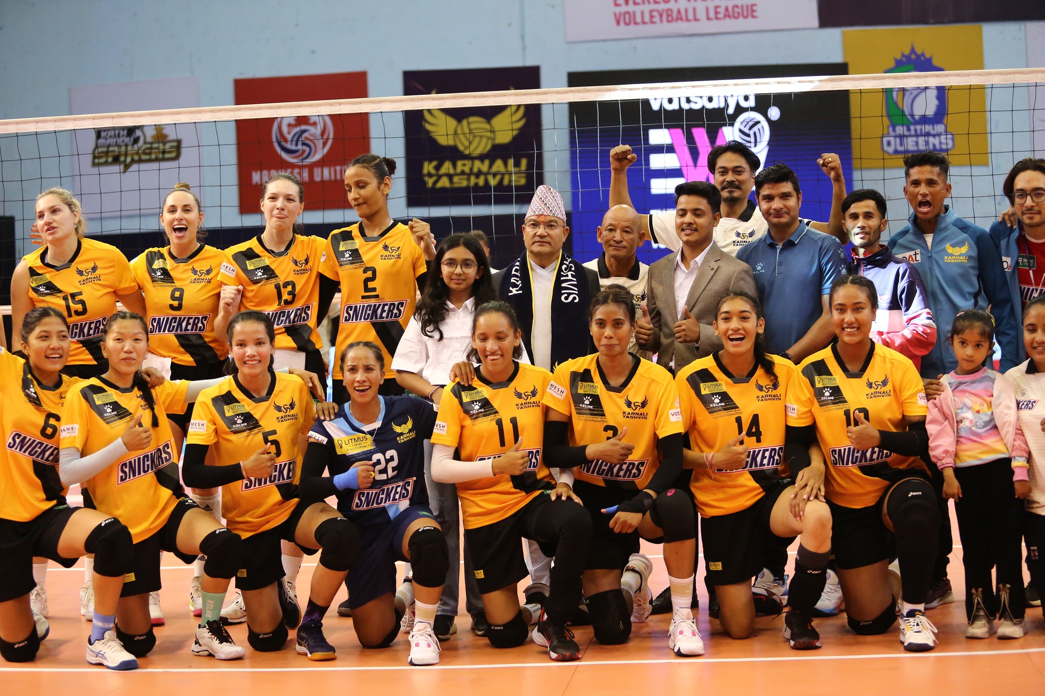 कर्णाली यस्वीस एभरेस्ट वुमन्स भलिबल लिगको च्याम्पियन बनेको छ। राष्ट्रिय खेलकुद परिषदको कर्भड हलमा भएको खेलमा आज भएको फाइनल भिडन्तमा ललितपुर क्विन्सलाई ३-२ को सेटमा पराजित गर्दै कर्णाली च्याम्पियन बनेको हो।