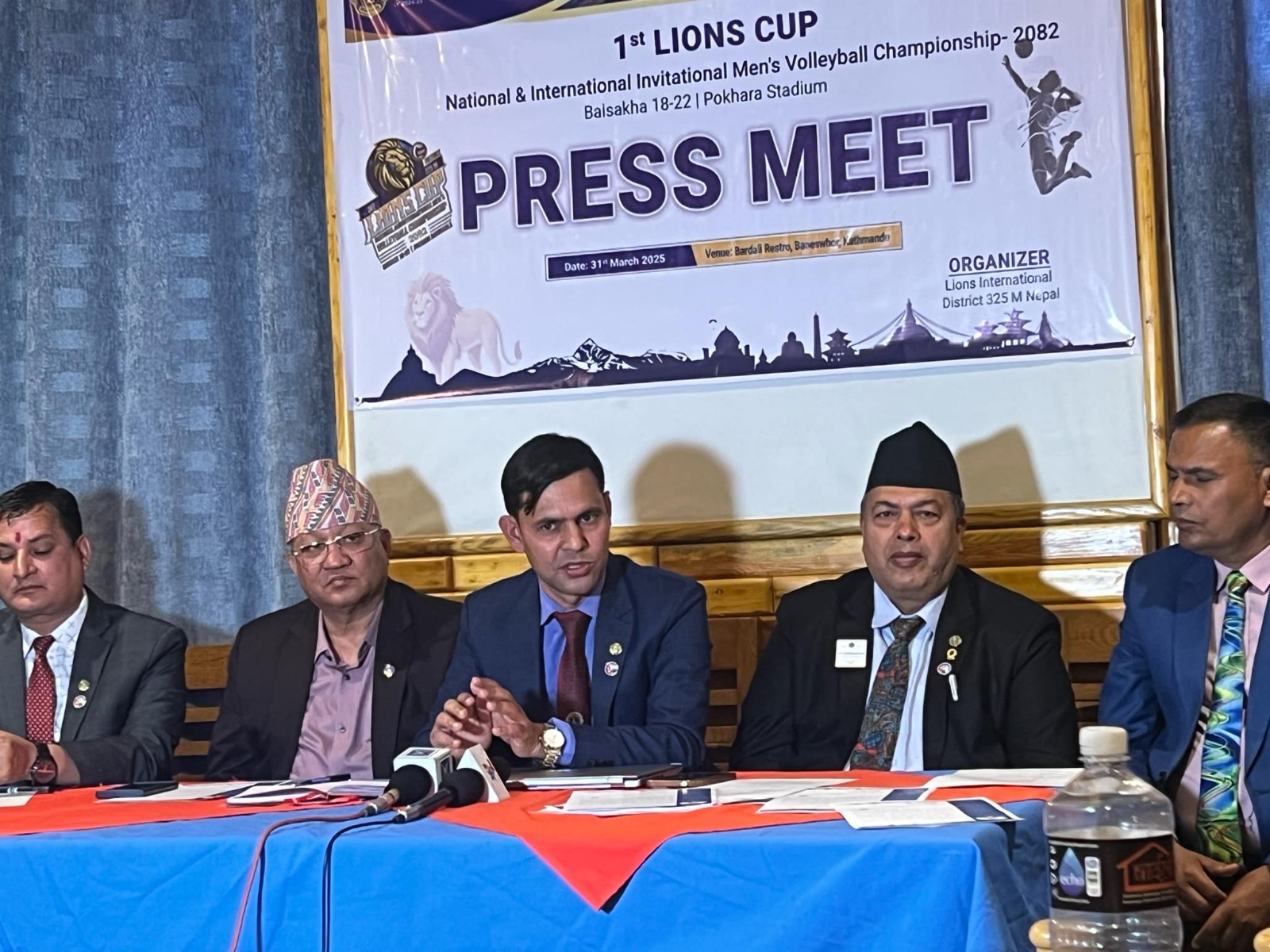 आयोजकले सोमबार काठमाडौंमा पत्रकार सम्मेलन गर्दै अन्तर्राष्ट्रिय स्तरको लायन्स कप भलिबल २०८२ साल बैशाख १८ देखि २२ गतेसम्म हुने जानकारी दिएको हो ।