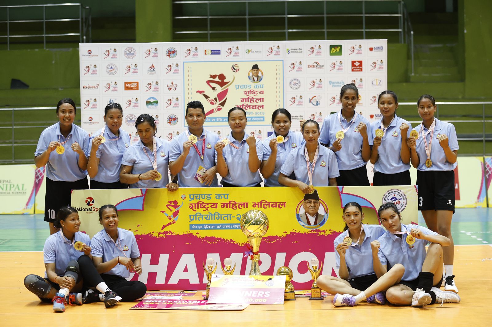 विभागीय टिम एपिएफ क्लबले ‘प्रचण्ड कप’ राष्ट्रिय महिला भलिबल प्रतियोगिताको उपाधि जितेको छ। शनिबार पोखरा रंगशालामा नेपाल पुलिस क्लबमाथि शानदार जित निकाल्दै एपिएफ पहिलो संस्करणको प्रतियोगिताको च्याम्पियन बनेको हो।